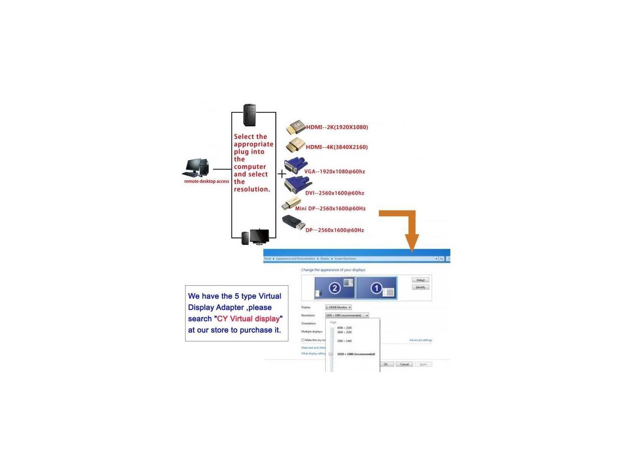 - CY Virtual Display Adapter DP Displayport Dummy Plug Headless Ghost Display Emulator 2560x1600p@60Hz