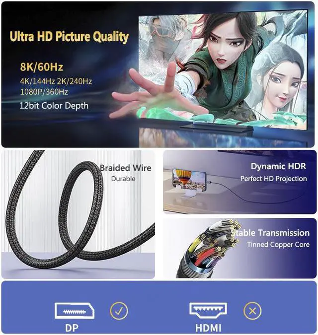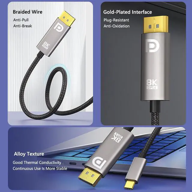 • 8K@60Hz UHD Resolutions, supports resolutions 8K (7680x4320) @60Hz, 4K@144Hz, 2K@240Hz. Backwards compatible with DisplayPort 1.3, 1.2 and 1.1.