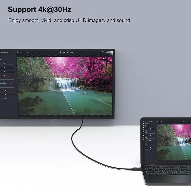 Supports video resolutions up to 3840 x 2160,4K@30HZ 1920x1080@60Hz(1080p Full HD) and flawless audio pass-thru for uncompressed digital 7.1, 5.1 or 2 channels.