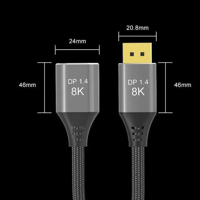 DP1.4 Standard,This Displayport extension cable supports 8K ultra-high resolution and is backwards compatible with 4K @ 144Hz, UHD and HDR. Upgraded to DP1.4, is also compatible with DP1.2 version. With a maximum bandwidth of 32.4 Gbps, signal transmission is smooth and stable.