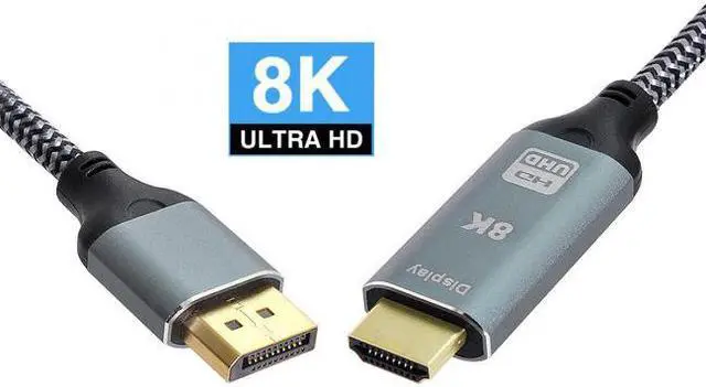 Gold-plated dp to hdmi monitor cable Video 8K, 4K UHD 2160p, HD 1080p, connectors, tinned copper wire, durable Nylon Braided, aluminum slim case, all of them ensure a strength connectivity between devices;