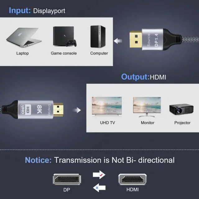 This is a 8K DisplayPort to HDMI cable, Don t support HDMI to DP. It is not Bi-directional.
