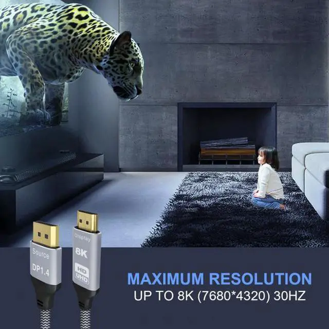 DP x HDMI cable supports 8K@30Hz, 4K@60Hz for DisplayPort Enabled Desktops and Laptops to Connect to HDMI Displays, enjoy home theater with 8K/4K high resolution.