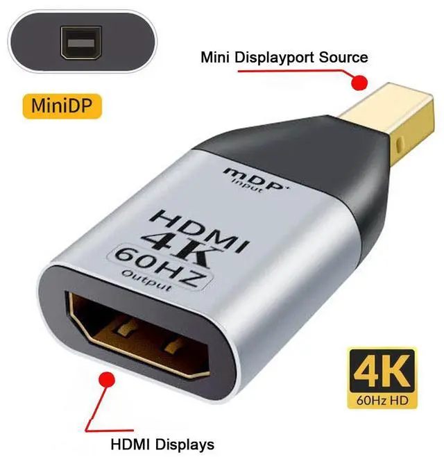 The Mini DisplayPort to HDMI signal format converter seamlessly connect next generation DisplayPort based MacBook, MacBook Pro, or MacBook Air with a Mini DisplayPort to high definition displays. Mini DisplayPort offers a unified, scalable, and cost effective interface for embedded and external display applications.