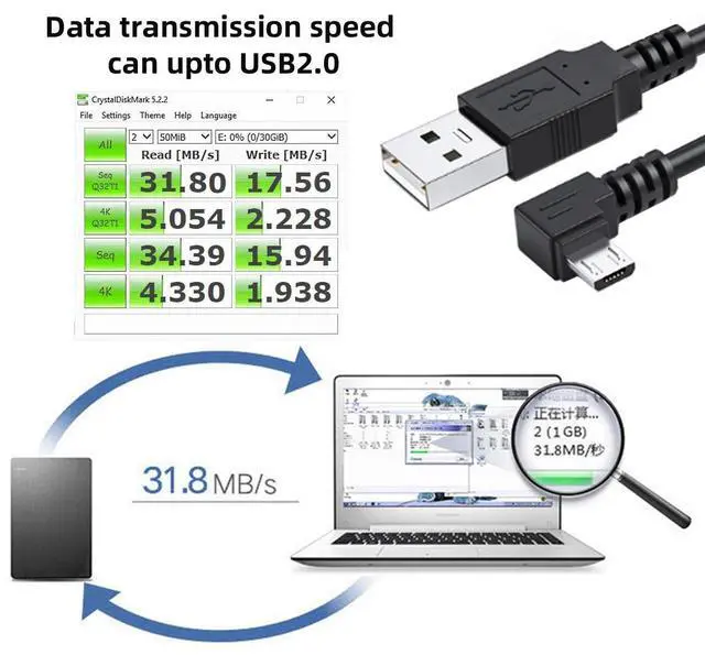 Angled 90 degree Micro USB Male to USB 2.0 Data Charge Cable for Cell Phone Tablet