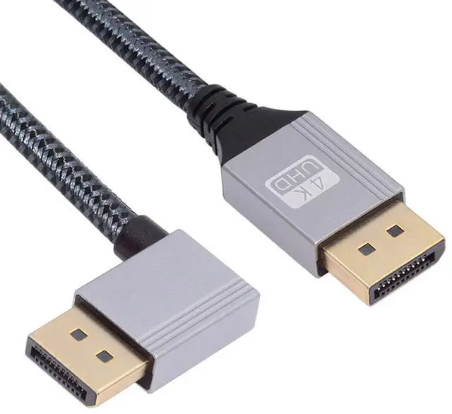 • RightAngled DisplayPort DP to DP Cable 4K 60hz Cable Silver Sleeve Ultra-HD UHD 90 Degree for Desktop Laptop Monitor Graphics Card