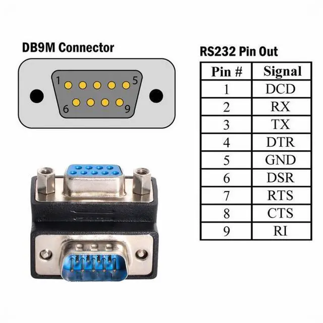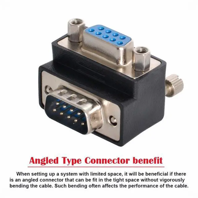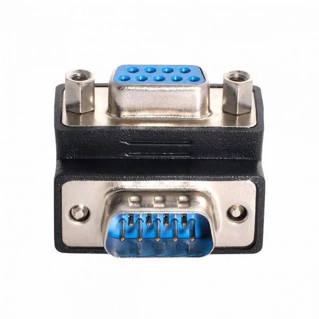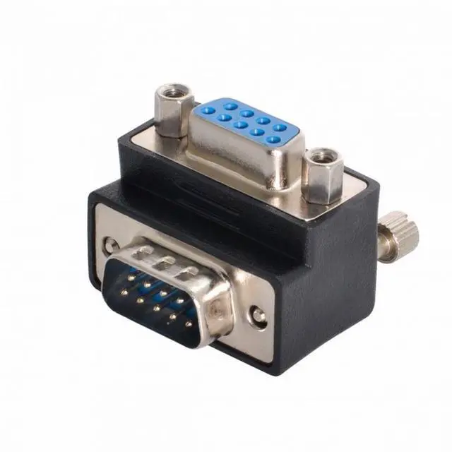 • 9 pin density plug to socket adaptor. Two rows contacts 90 Degree Angled Adapter.