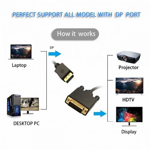 This is a DisplayPort to DVI Cable for interfacing next generation DisplayPort based PC and notebook computers with conventional DVI displays, such as CRT, LCD monitors, and projectors.