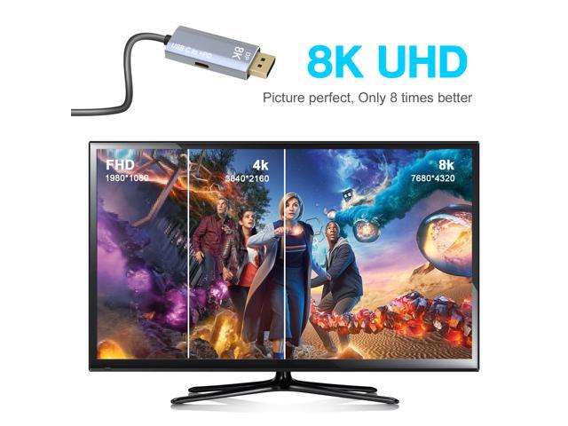 - 8K UHD Video Resolution,the USB C DisplayPort 8K Cable supports for Ultra High Definition Resolution ups to 8K(7680*4320)@60Hz,4K(3840*2160)@144Hz,With our conversion cable, you can achieve the ultimate 8K and 4K video quality experience on your large screen display.Note:If you would like to output 8K in your external screens,your input source and screens must all support 8K