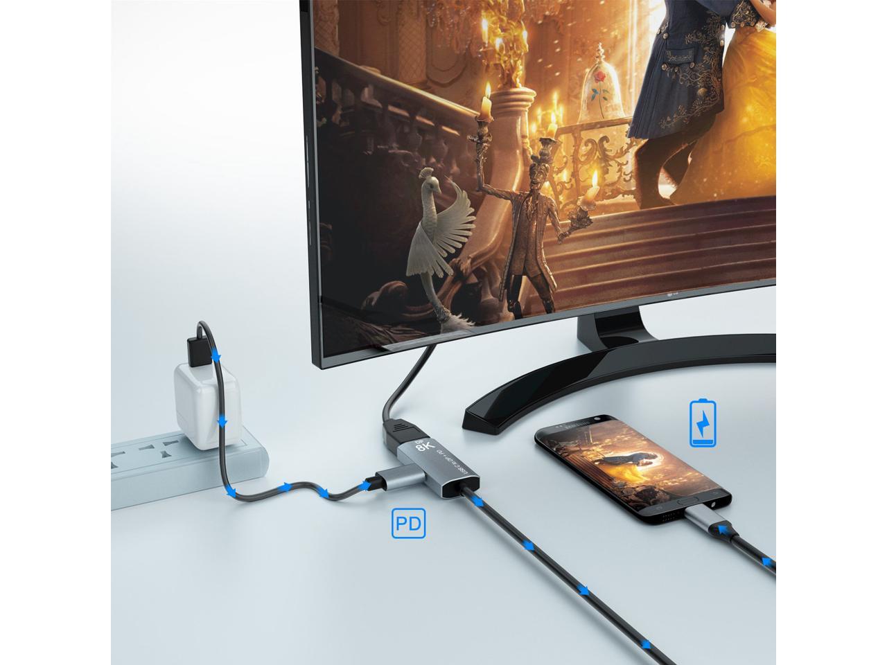 - USB-C to DisplayPort Cable,enables to connect from your newest USB-C Laptops(Like Macbook Pro 2020,2019,2018) that utilizes "DisplayPort Alternate Mode 1.4" to your Displayport Monitors so you can achieve a large screen visual experience,a separately displayport cable is needed,but not included in our package.Note£ºThe USB-C PD in the cable can be only used for power delivery,can not be used for data transmissions