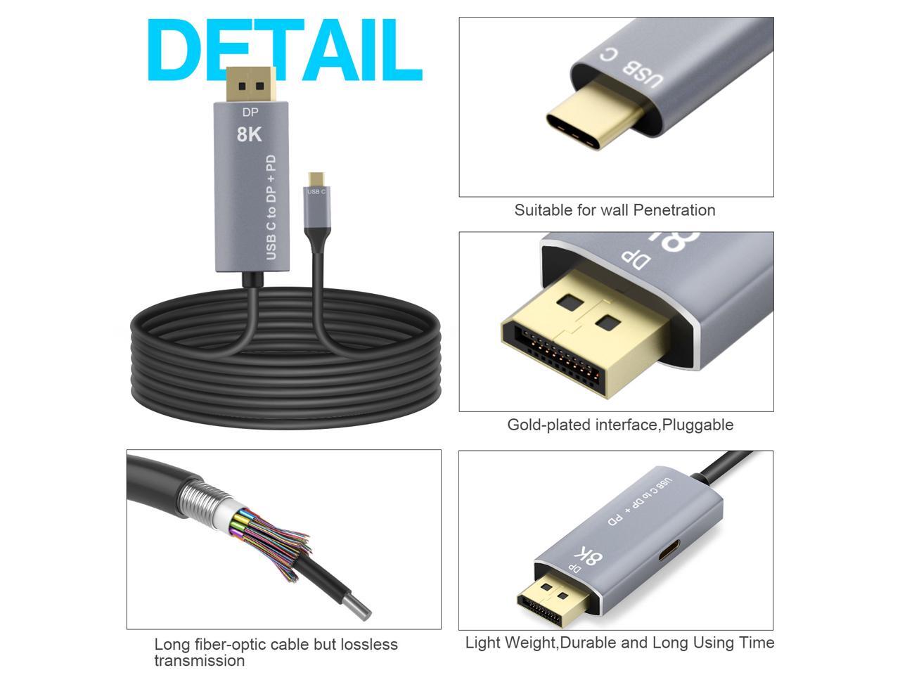 CableDeconn USB C to DisplayPort 1.4 8K Cable with USB-C PD 8K@60Hz 4K@144Hz Converter Thunderbolt 3 to DisplayPort Adapter Compatible with New MacBook Pro 2019 2020 DELL XPS 1m 3.3ft