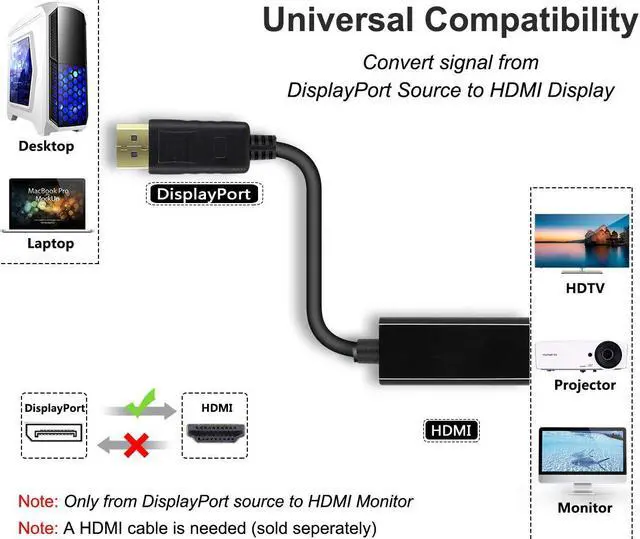 The YXWIN DisplayPort to HDMI Adapter - Black is designed for connecting DisplayPort equipped computer systems to HDMI equipped monitors, providing optimal video quality up to 1080p HDTV or 1920 x 1200 PC graphics. It is a cost-effective solution to allow your DisplayPort computer to work with the HDMI display for business, home entertainment, conference rooms, and more.