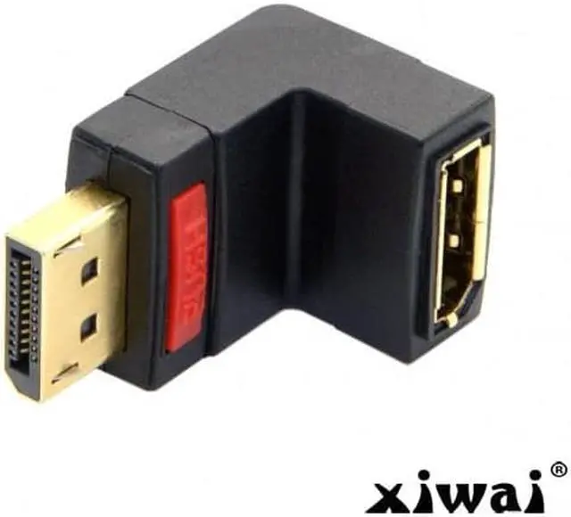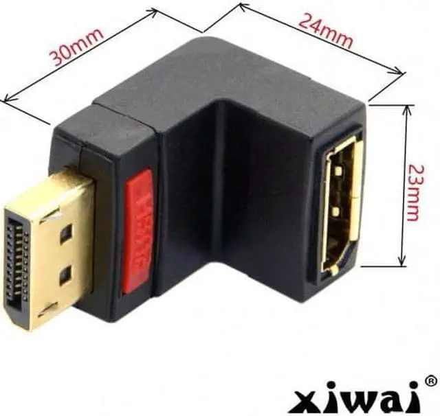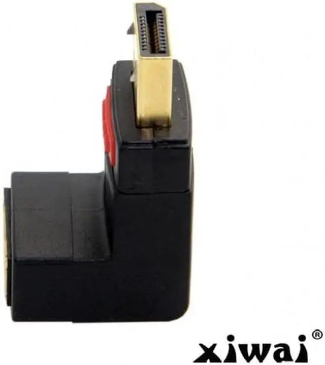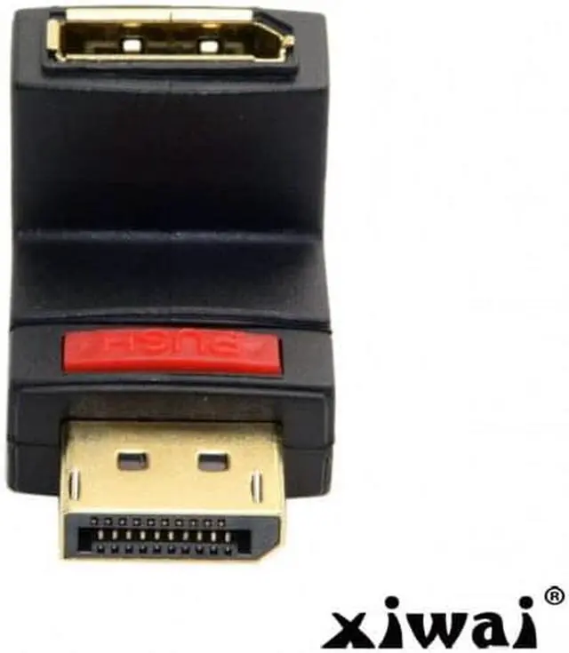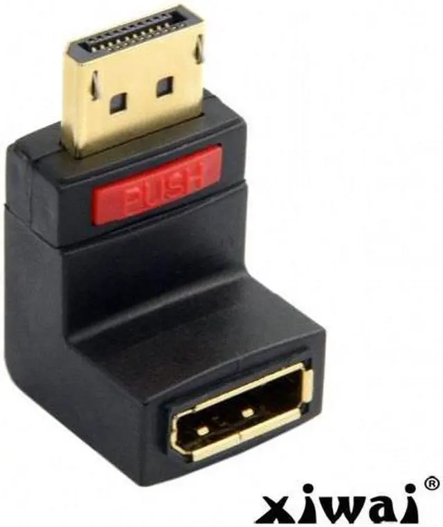 Up Angled 90 Degree DisplayPort Male to Female Extension Adapter This Displayport adapter enables you to lead the female port of your Displayport devices, e. g. flat screen etc. 90d up. Thus you can connect your Displayport cable without any problem in case the existing DP female port is difficult to access.
