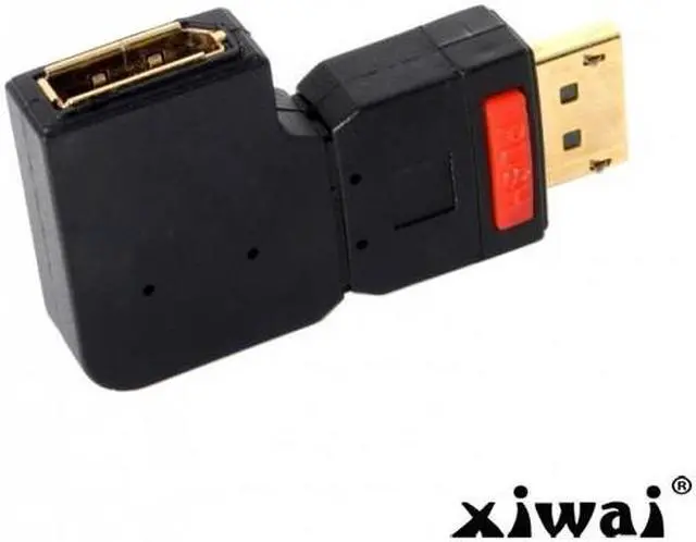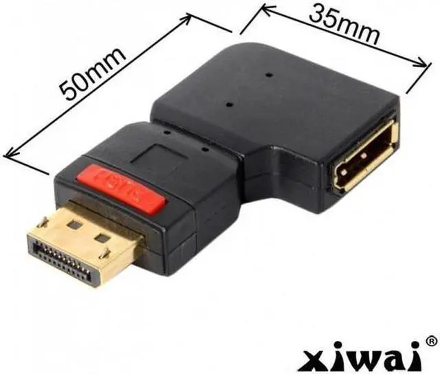 Left Angled 90 Degree DisplayPort Male to Female Extension Adapter This Displayport adapter enables you to lead the female port of your Displayport devices, e. g. flat screen etc. 90d left. Thus you can connect your Displayport cable without any problem in case the existing DP female port is difficult to access.