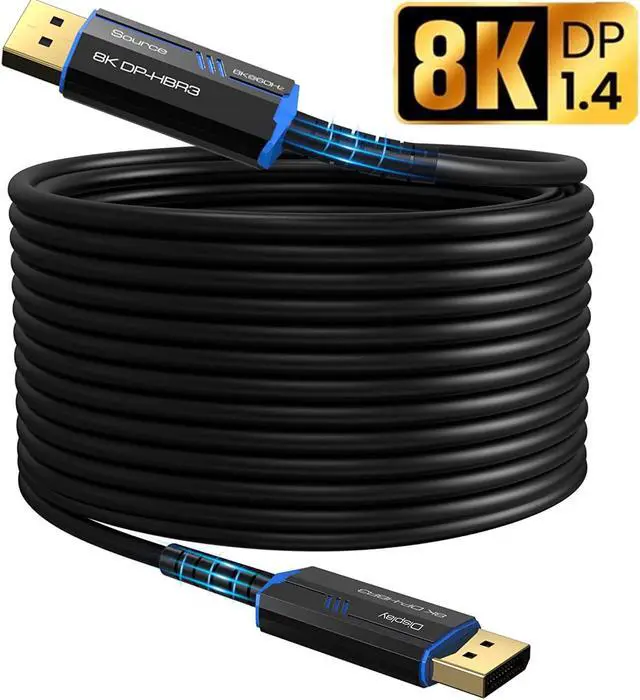 This is an 8K Fiber Optic Displayport 1.4 Cable, supporting 8K@60Hz, 4K@144Hz HD displays. Our Fiber Optic Displayport 1.4 Cable is made of fibre optic material which is more resistant to electromagnetic interference than ordinary copper wire and provides a stronger and longer lasting signal transmission, without the need for a signal booster. No loss of clarity or smoothness.