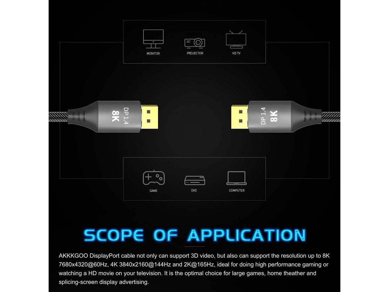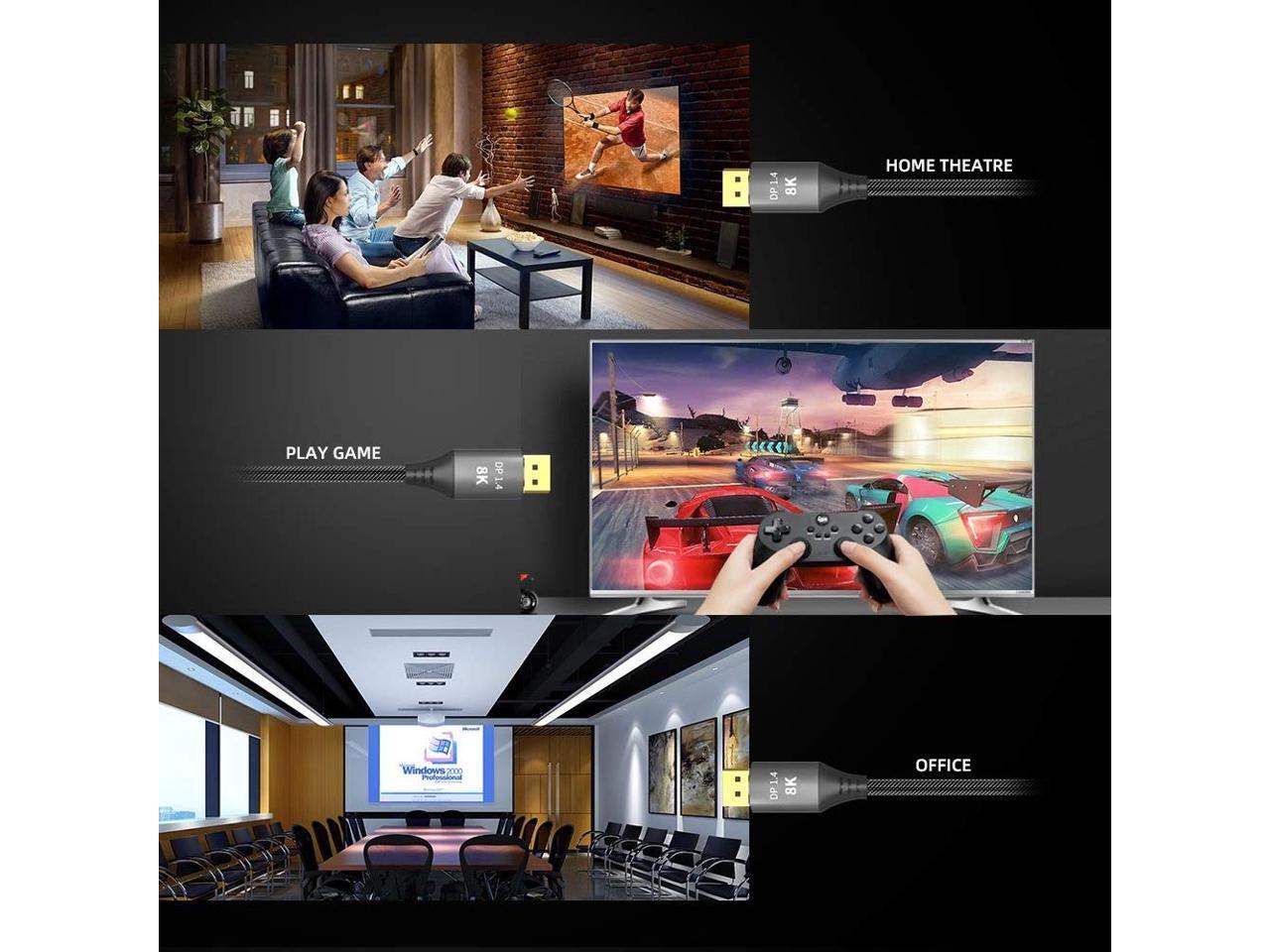 - DisplayPort cable not only can support 3D video, but also can support the resolution up to 8K 7680x4320@60Hz, 4K 3840x2160@144Hz and 2K@165Hz, ideal for doing high performance gaming or watching a HD movie on your television.
