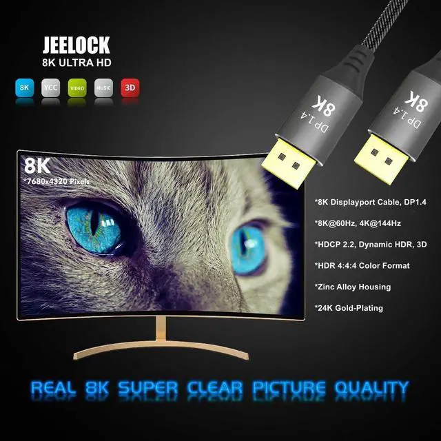 DisplayPort Ultra HD 8K 4K Copper Cord: Ultra HD 8K@60Hz for Video and Picture Transmitting,The CableDeconn Copper Cord Cable is Ultra HD 8K@60Hz(4K@144Hz)provides no Signal Missing transmitting,Support 3D visual effects,Supports up to 144Hz refresh rate,DisplayPort 1.4 Cable,with clearer video Transmissions,Providing an unprecedented HD viewing experience