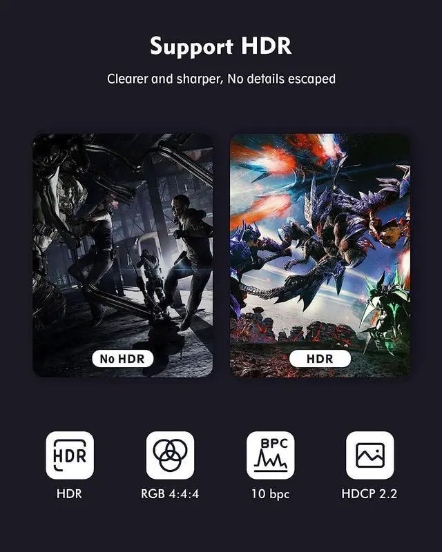 - HDCP 2.2, HDCP 1.4, HDR.. Backward compatible with DisplayPort 1.3/1.2.