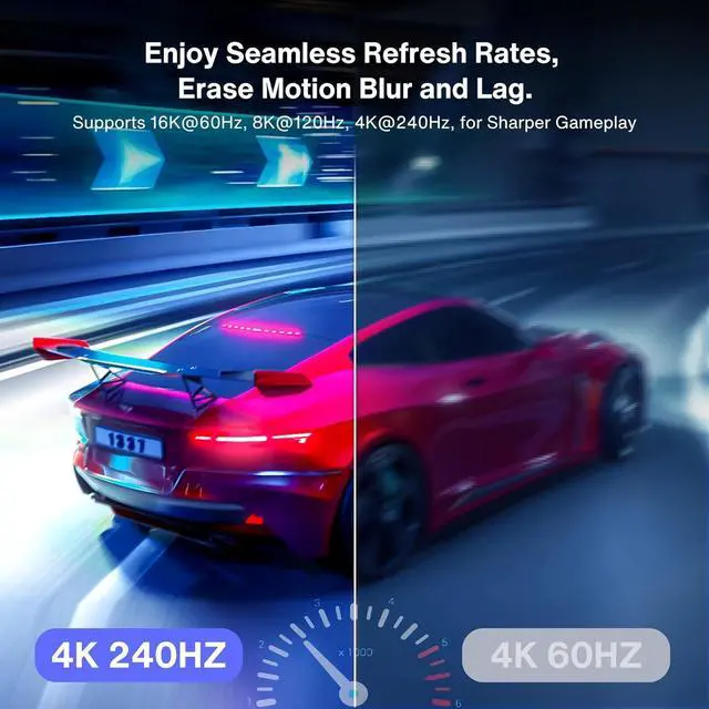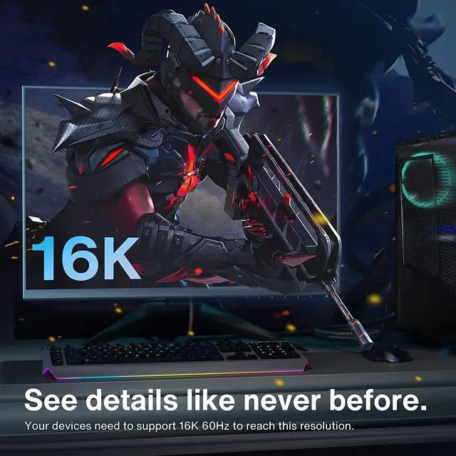 • Flicker-Free Gaming Experience: 8K DisplayPort 2.1 cable supports FreeSync and G Sync technology, perfect for the latest massive FPS games and Ultra HD video streaming. Support 16K@30Hz with DSC, 10K@30Hz, 8K@60Hz, 4K@240Hz/165Hz/144Hz. Single-screen video output 16K@30Hz (DSC), 10K@30Hz and dual-screen 8K@120Hz, 4K@144Hz, three-screen display 4K@60Hz.