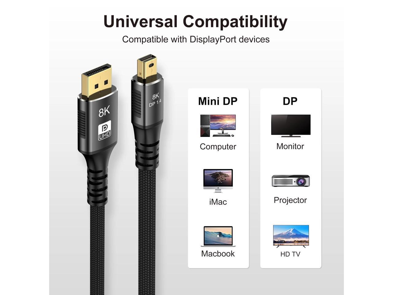 - 8K Mini DisplayPort to DisplayPort 1.4 Cable 240Hz