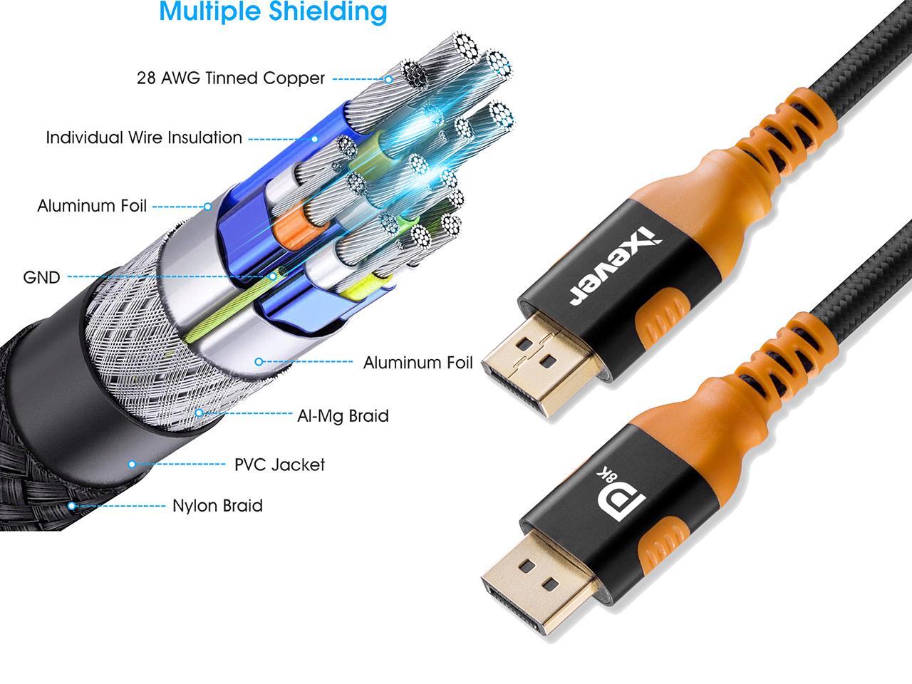 - iXever DisplayPort 1.4 Copper Cable enable to connct from your DisplayPort Source Device to your 4K or 8K DP Display,Enjoy the Ultra High Definition Ultimate Experience of the Big screen,fit for PC Laptop as Source,DisplayPort HDTVs ,Monitors ,Projectors as Displays,Plug and Play