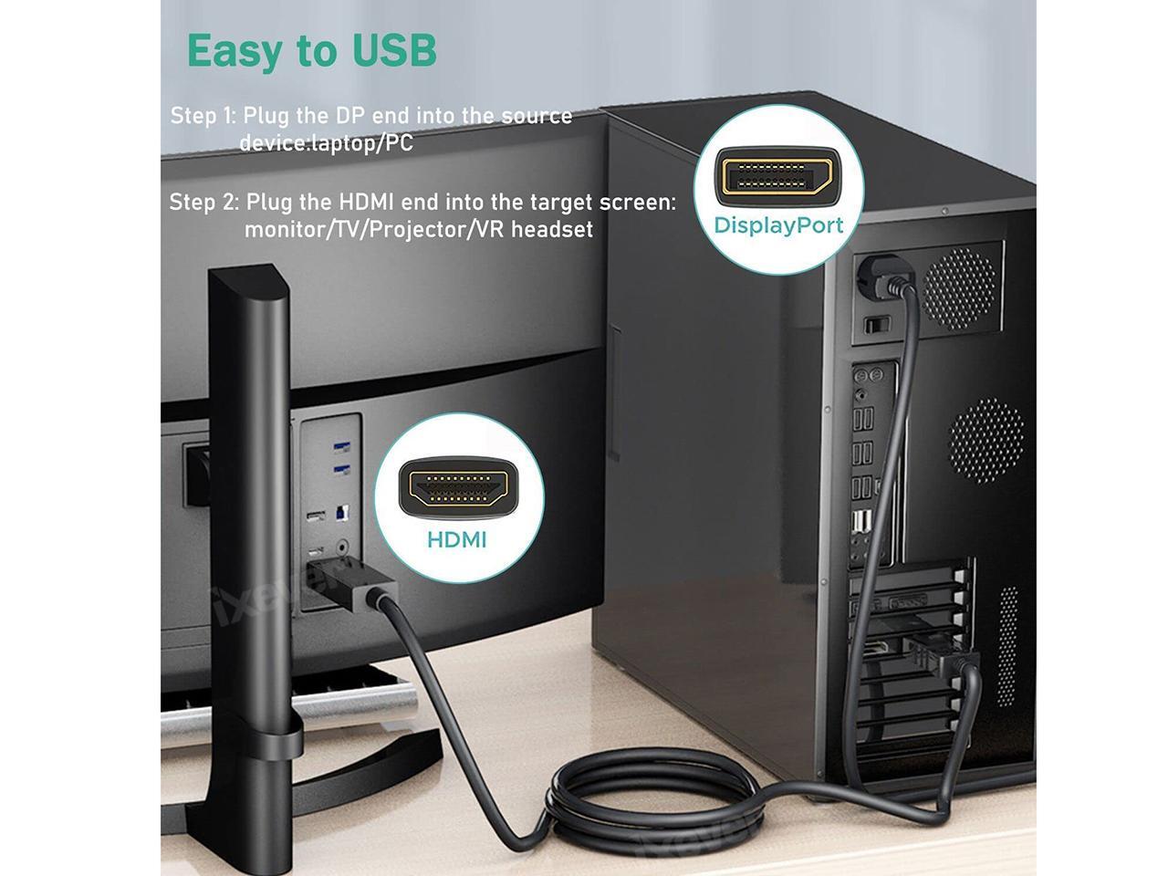 - DisplayPort to HDMI cable directly connects a Display Port (DP, DP++, DisplayPort++) equipped computer to an HDTV, monitor, or projector with HDMI input