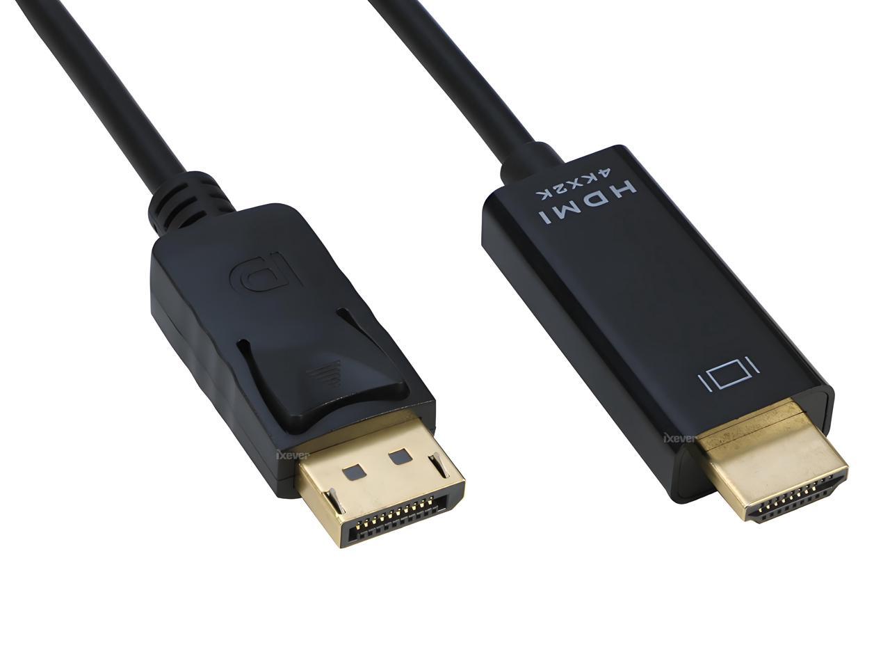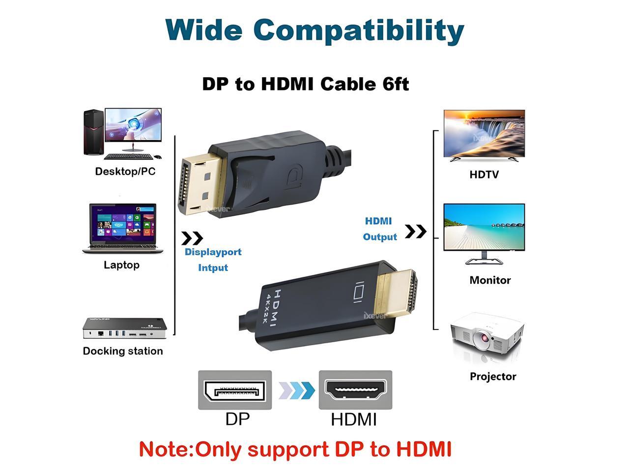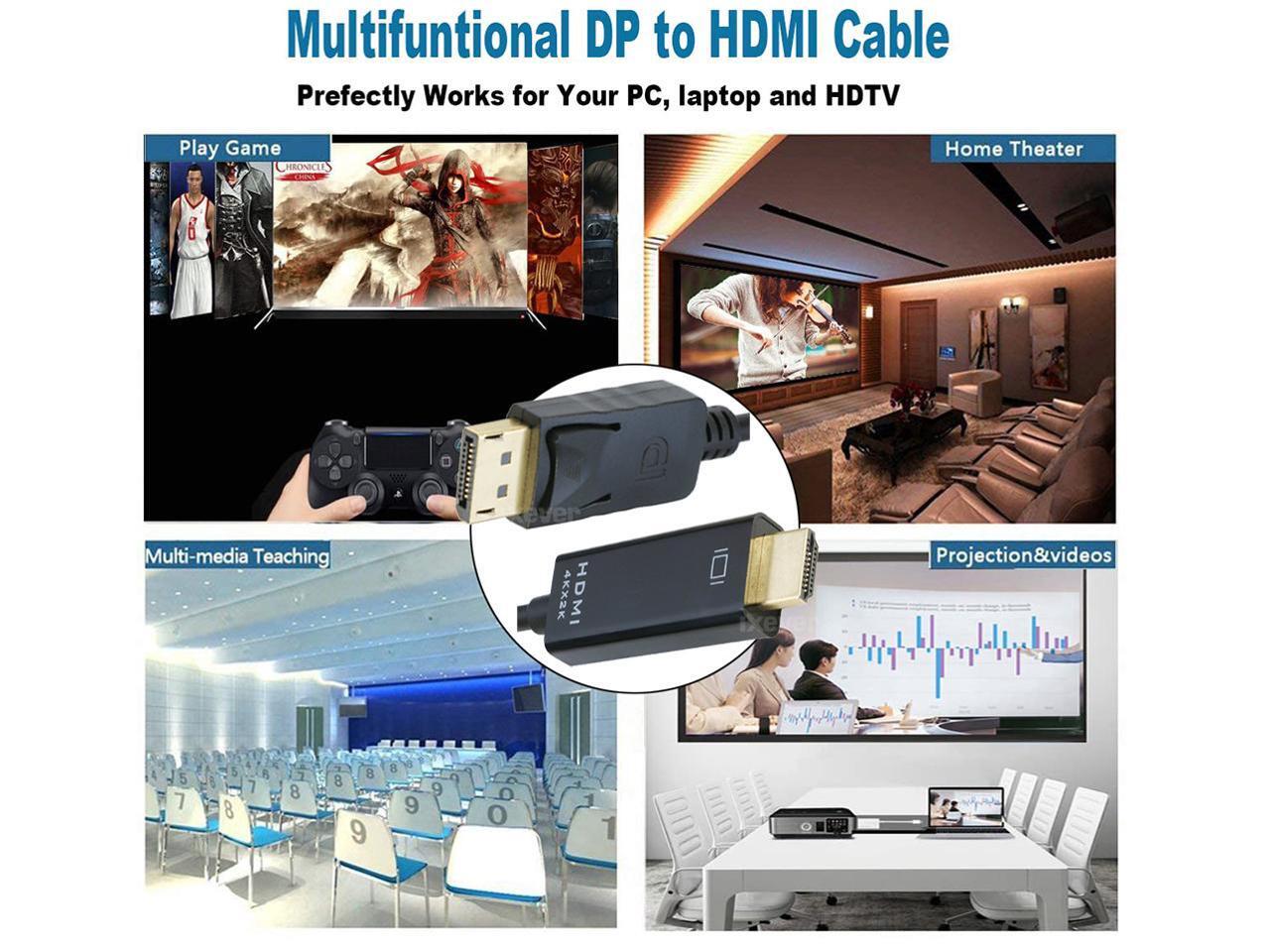 DP DisplayPort to HDMI Cable 6ft, IXEVER 4K Display Port to HDMI Adapter Male to Male 6 Feet Cable Cord Converter for PCs to HDTV, Monitor, Projector