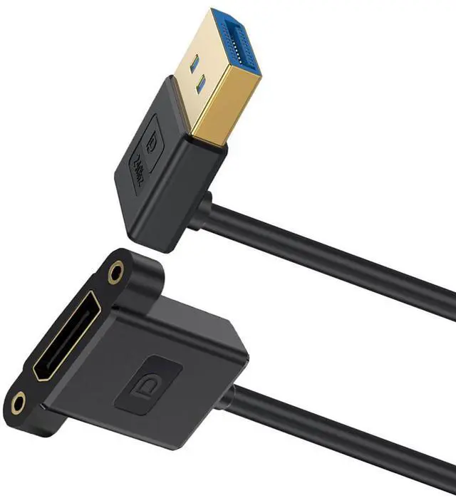 Angled Connector: The angled type Allowing you to connect it to a female port, even if space around the port is limited.