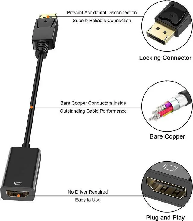 The Moread DisplayPort to HDMI adapter provides a cost-effective and easy solution for connecting a desktop, laptop, or other devices with DisplayPort port to a HDMI display such as monitor, projector or TV.