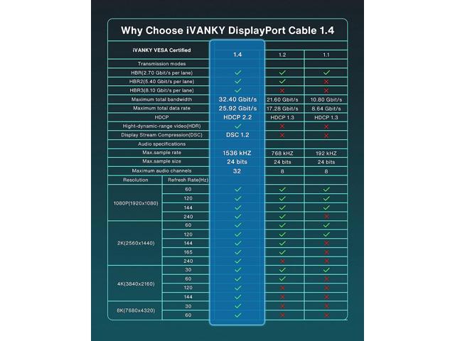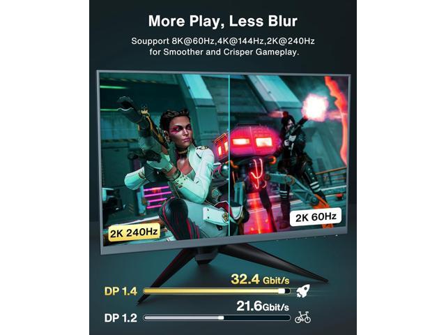 - Ultra HD 8K@60Hz for Video and Picture Transmitting,The Copper Cord Cable is Ultra HD 8K@60Hz(4K@144Hz)provides no Signal Missing transmitting,Support 3D visual effects,Supports up to 144Hz refresh rate,DisplayPort 1.4 Cable,with clearer video Transmissions,Providing an unprecedented HD viewing experience