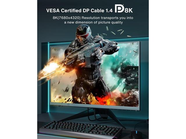 8K DisplayPort & DP Cable, VESA Certification 3.3ft (for DP 1.4 Gaming PCs/laptops/Graphics Cards/Monitors, Support HBR3 Bandwidth of 32.4Gbps,4K@144Hz,2K@165Hz,1080P@240Hz