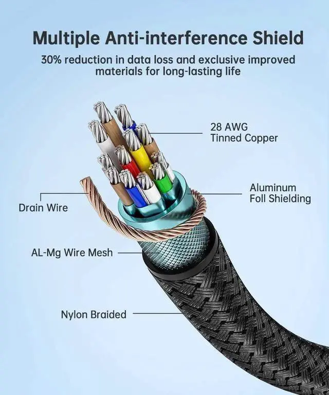 Nylon Braided and 24K Gold Plated connectors, stable heat dissipation