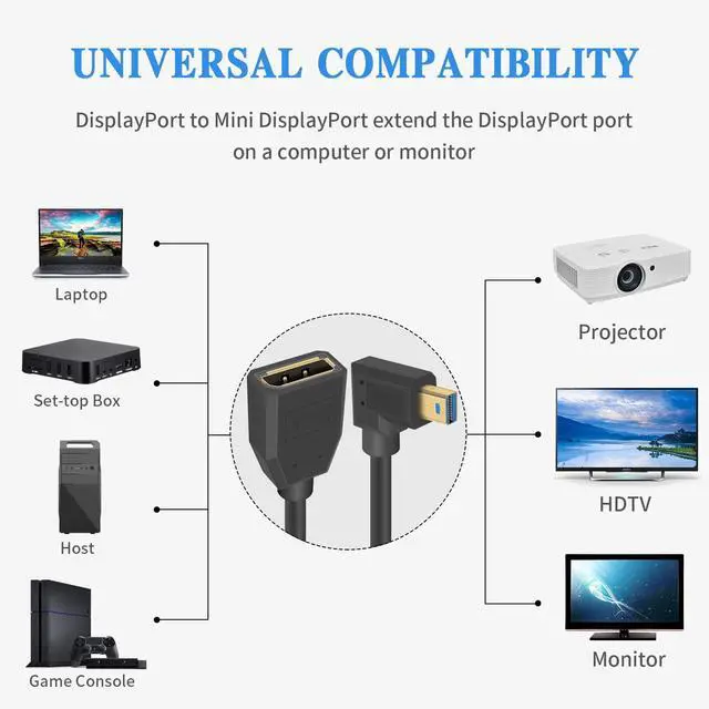 • Mini displayport to displayport cable 8k is ideal for monitor, television, personal computer, laptops and other device with a mini displayport Output. When using, you can connect from your mini displayport computer to displayport monitor or television.
