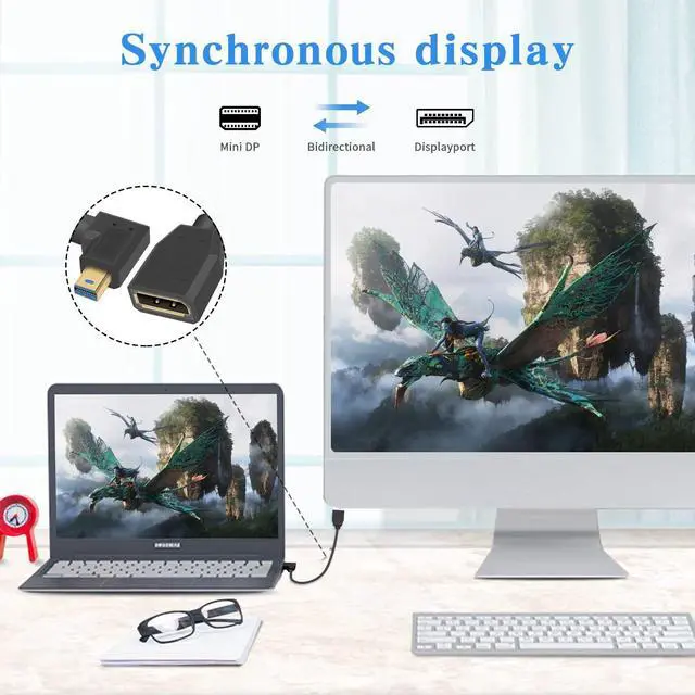 • Our left angled mini displayport male to displayport female cable is the perfect solution to connect your PC or mini Displayport-equipped computer to a monitor, Plug and play, no software installation required.