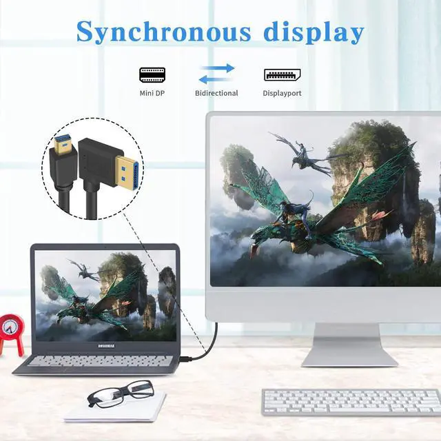 Our down Angled Displayport Male to Mini Displayport Male Cable is the perfect solution to connect your PC or mini Displayport-equipped computer to a monitor, Plug and play, no software installation required.