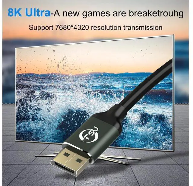 8K DisplayPort 1.4 cable 8K @60Hz 4K @240Hz This DP to DP cable is very suitable for expanding video and transmitting audio signals. With an 8K DP 1.4 cable you always get a clear picture and sound. It is an ideal solution for large-scale gaming and ultra high definition video streaming, home entertainment, TV channels, business, meeting rooms, etc. Unique experience - Supports resolutions and refresh rates up to 7680x4320 8K@60Hz / 3840x2160 4K@240Hz, ideal for high performance gaming or for watching an HD movie on your TV. - Refresh rate up to 8K@60Hz 4K@240Hz, with 48Gbps high speed bandwidth, very suitable for multiplayer games, there is no lag and no freezing.