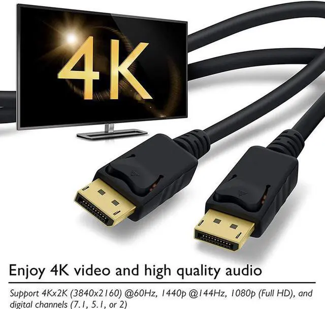 Bidirectional DisplayPort to DisplayPort Cable 6 Feet Black.