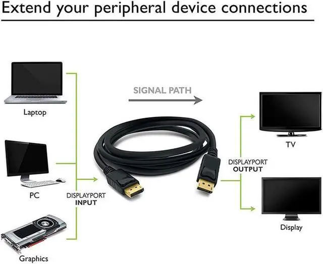 Connect a DisplayPort compatible PC to a monitor or projector with DisplayPort. Or Connect a DisplayPort compatabile PC and laptop to a monitor with Displayport.