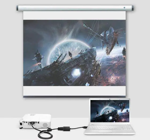 OMPACT DESIGN - The compact-designed portable DisplayPort to VGA adapter connects a computer, desktop, laptop, or other devices with DisplayPort port to a monitor, projector, HDTV, or other devices with VGA port