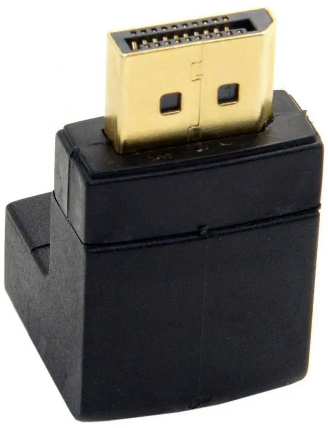 Connector: Displayport male to Displayport female port 90° angled down.