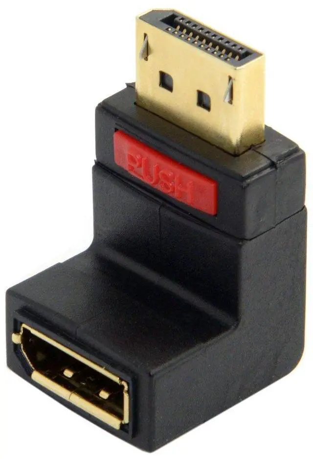 This Displayport adapter enables you to lead the female port of your Displayport devices, e.g. flat screen etc. 90° up.