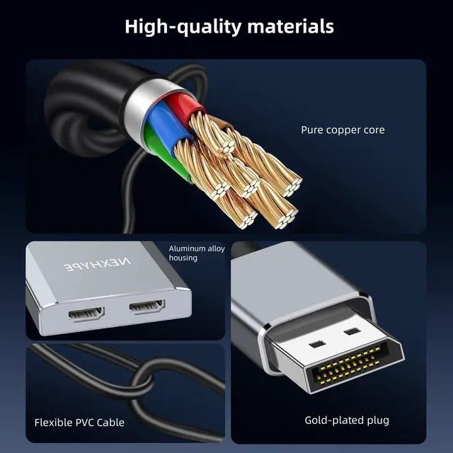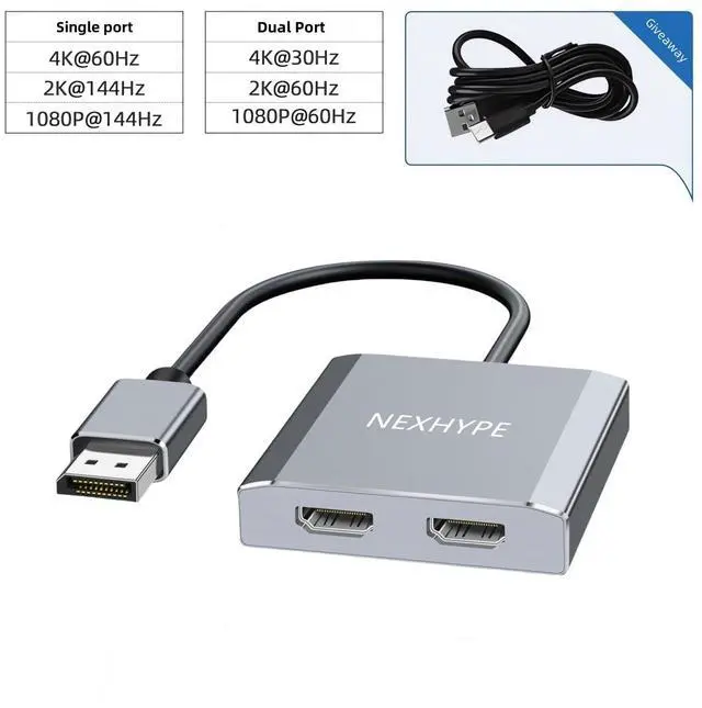 - [Stable Transmission]: This dual HDMI splitter features gold-plated ports for more stable signal transmission, multiple shielded cables for precise data streaming, The package includes a Micro USB power supply cable to ensure stable operation of the product. If your computer cannot connect to this power cable, please connect it to an additional power adapter.This DisplayPort splitter does not require any drivers, is plug-and-play, and is easy to use.
