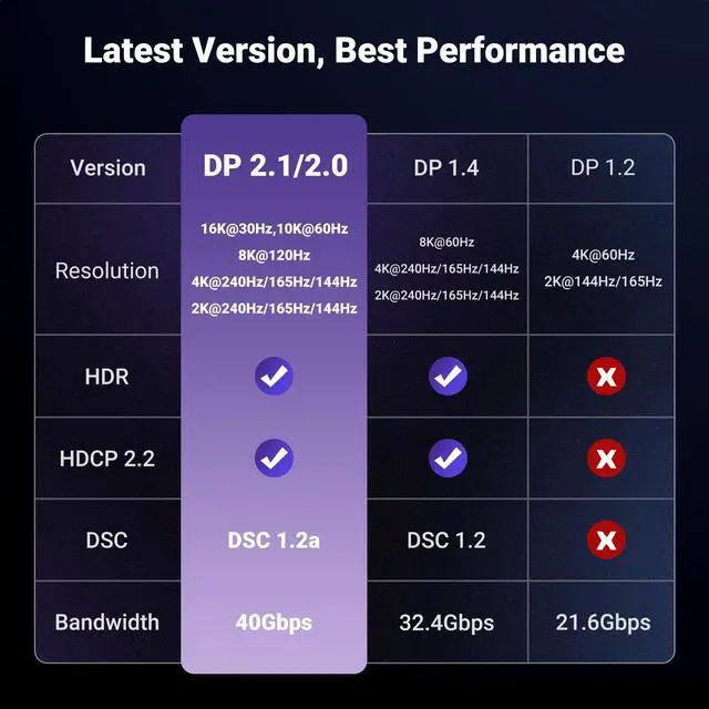 : This UGREEN Type C to DP cord supports up to 16K@30Hz resolution (backward supports 8K@120Hz, 4K@240Hz), easily playing games or movies on a high-definition big-screen TV.