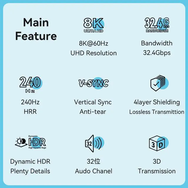 - [Wide Compatibility]Bidirectional DisplayPort to DisplayPort cable is suitable for graphics cards, monitors, projectors with Displayport ports, backward compatible with DP1.3, DP1.2, DP1.1, DP1.0 Version. Compatible with FreeSync, G-Sync, Odyssey G7 G9 CHG90 CRG9, Ben Q, Dell, HP, Acer, iiyama, Alienware monitors and more. Supports DP, DP++ and DisplayPort++.