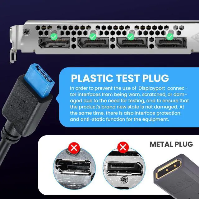 Displayport Cable 1.4This DP to DP Cable Short, with 1feet of cable length, and use the LCP of material, can prevent the DP interface from being worn, scratched and damaged due to the industrial of testing, and mainly used in factory equipment testing, can protect the device's interface without scratches & anti-static.