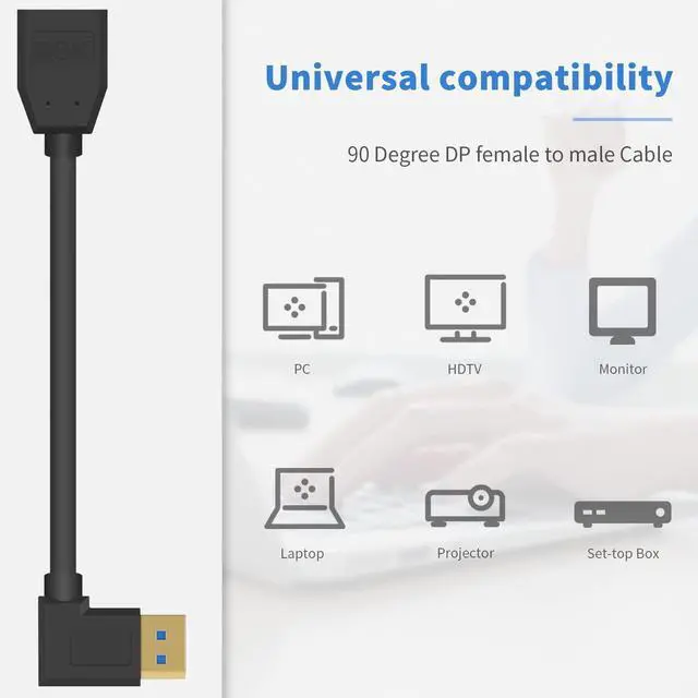 • [90 Degree Displayport]This 90 degree angled DP 1.4 Cable applies for the tricky scene that a common cable is hard to be twisted for the working need. With our right-angle displayport cable, the transmission will be much easier.