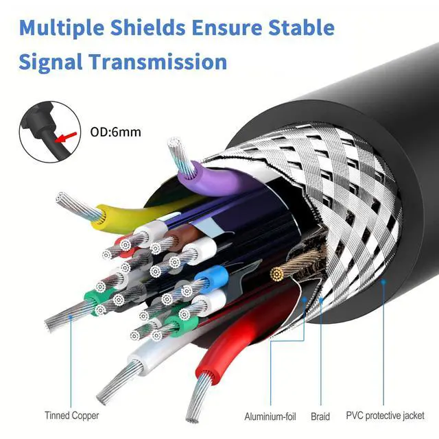 Made of 28AWG Tinned copper with triple-layer shielding