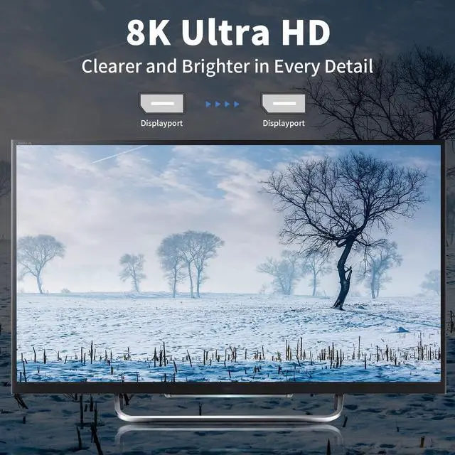 • [8K Displayport 1.4 Cable]: HIGH RESOLUTIONS 8K Displayport 1.4 feature support for high-bandwidth HBR3, 32.4 Gbps bandwidth, DSC 1.2 display stream compression and HDR10. Resolution up to 7680x4320, refresh rate up to 8K@60Hz, 4K@144Hz, 2K@165Hz. Backward compatible with DisplayPort 1.3/1.2.