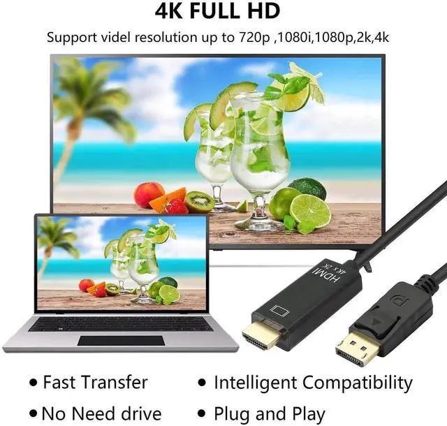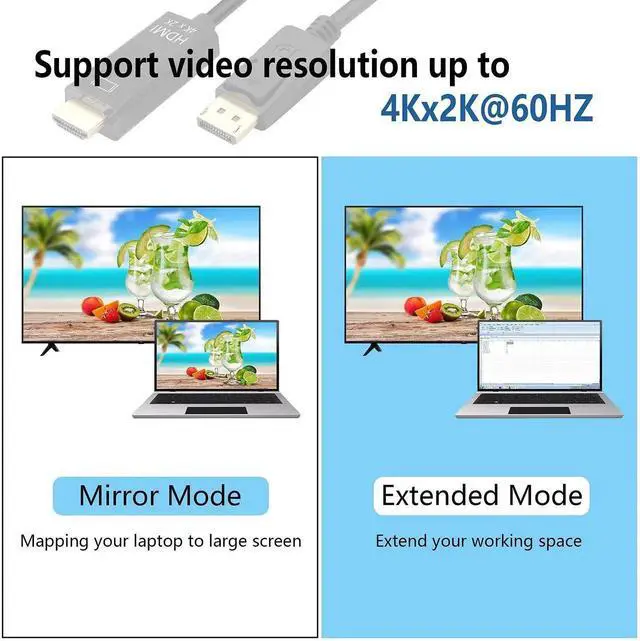 Display Port to HDMI cable is an indispensable companion for your PC, and tablet equipped with DisplayPortDP)Extend your desktop to a second monitor for an expanded workstation, To show presentations on a display at classroom, conference room with this cable.