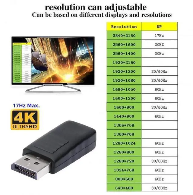 • Will work with any graphics card that has displayport output. Support 4K@17hz high resolution maxDummy plug makes PC to enable GPU for doing tasks: high resolution GPU accelerated remote desktop and GPU operations like cryptocurrency mining rig, rendering and simulations.